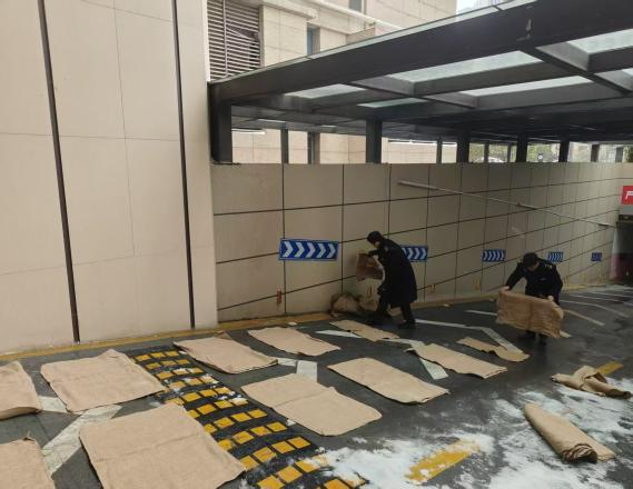 接到寒潮预警后,公司副总经理李平迅速召集运营负责人召开紧急部署会议,明确各项目点清雪责任区域,强调“优先清理出入口、主干道、坡道等关键位置”的核心要求,叮嘱做好队员防寒防护。会议结束后,各运营负责人即刻行动通过工作群、电话等方式传达部署要求,同步清点分发早已准备好的铁锹、扫帚、工业盐、防护垫等应急物资,为即将到来的硬仗做好了万全准备。